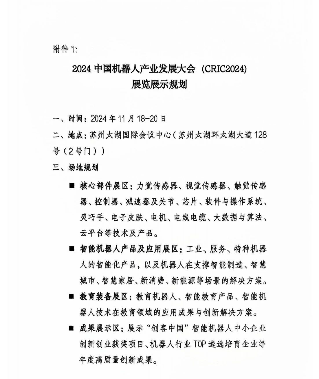 关于召开2024中国机器人产业发展大会(CRIC2024)——人形机器人产业发展论坛的通知