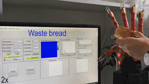 随后,再用七种垃圾的数据集去训练机器手。通过多感知信息的机器学习,机器手可以融合不同数据,从而去准确识别不同垃圾。