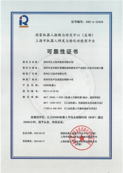 近期,汇川SCARA机器人顺利通过MTBF 20000小时测评,随着机器人在制造、服务等行业的快速推广与应用,MTBF作为可量化的可靠性指标,已经成为衡量工业机器人产品好坏的关键指标。对机器人可靠性的关注和重视,体现了汇川推进工业文明、共创美好生活的愿景和使命,成就客户为先、以贡献者为本、坚持开放协作、持续追求卓越的核心价值观。