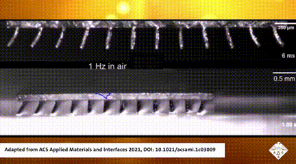 通过氧化铁微粒在凝胶内形成磁链,这些小脚可以沿磁场方向进行磁化,并能在施加外加磁场时产生磁力矩从而控制其弯曲,产生爪状抓握动作